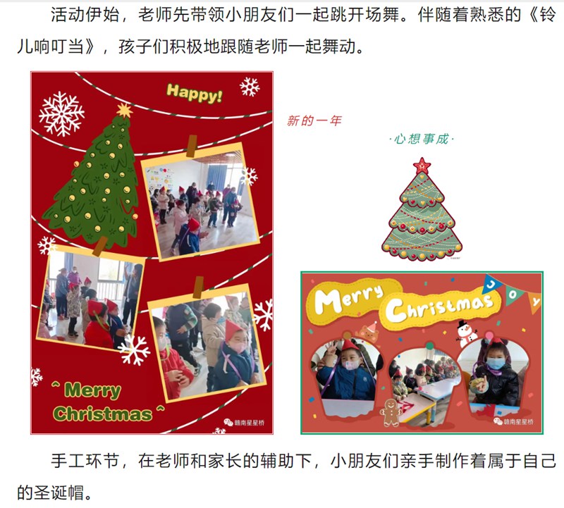 转眼又到了寒冷的冬天,在跨年夜前,圣诞的红与绿开始出现在白茫茫的冬天里。本周团体课主题日为了让孩子们感受节日氛围,围绕圣诞节开展了一系列小活动。 紧接着,圣诞树登场啦!小朋友乖乖地排队等待装饰圣诞树,一双双小眼...